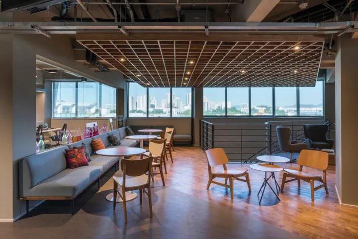 深圳裝飾公司設計結合當下前沿的設計理念,打造一個靈動多元的辦公空間。在開放工作區穿插了眾多形式各異的協作空間,讓交流與分享隨時隨地。車廂座、看臺式階梯座、入墻沙發座等設計元素為空間增添了豐富的趣味性和青春色彩。