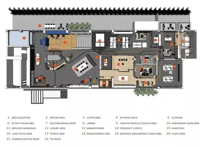 生活的三分之一甚至更多時間被工作充溢,高效并且健康的辦公方式對員工和企業來說至關重要,作為一個以辦公為主題的空間,功能性必然不能少。