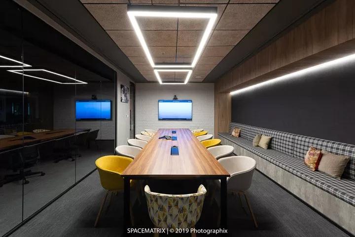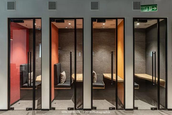 在熟悉了員工的工作方式后,裝修設計團隊將六種不同形式的會議空間納入到本案的設計中:電話亭、車廂座會議艙、階梯座位、頭腦風暴區和非正式/正式會議區。