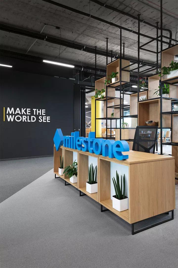“成立于1998年的 Milestone Systems 是全球開放式平臺 IP 視頻管理軟件行業的領導者。本案是由深圳裝修公司設計團隊為其打造的索非亞新辦公室。許多國際軟件開發公司在索非亞找到了壯大公司發展的重要條件,促進當地的建筑師和設計師去探索越來越先進的辦公環境,對稱性建筑布局、空間的多元性、平面視覺體系、開放協作、藍色