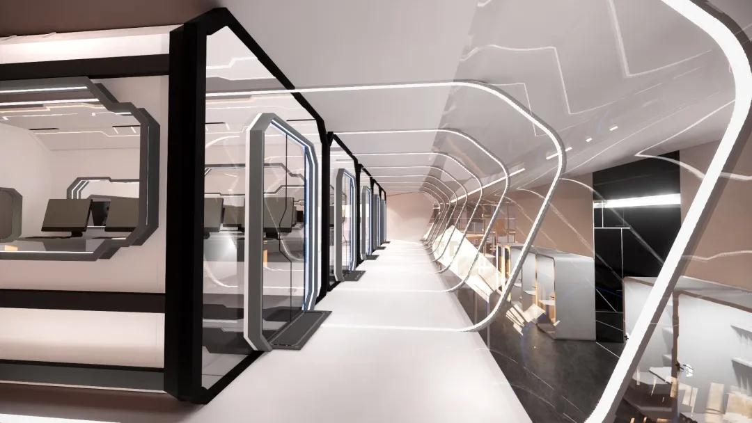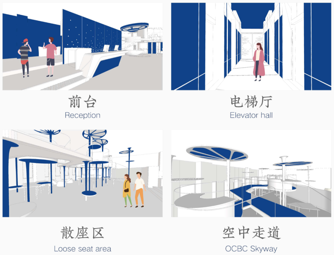 監(jiān)視層:監(jiān)視層是指爬高并向遠(yuǎn)處看,而監(jiān)視層是整個(gè)空間的高度。觀測層由觀測平臺(tái)和走道組成,走道由多列支撐。 out望臺(tái)是空中漫步的延伸,員工可以通過它觀察下面的休閑辦公區(qū)。
