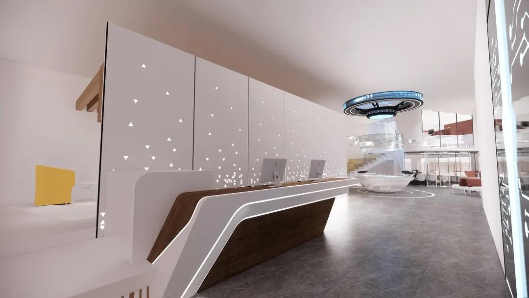 色彩在深圳裝飾公司室內(nèi)裝飾空間中的應(yīng)用。每種顏色都會(huì)使我們有不同的感覺。技術(shù)藍(lán)色和未來白色主要用于顏色,未來白色用于墻壁和定制桌子,技術(shù)藍(lán)色用于某些VR和全息設(shè)備,淺木地板和灰色混凝土用于地板。地板的顏色比辦公家具的顏色深。主要帶有一些睿智而沉穩(wěn)的語氣。