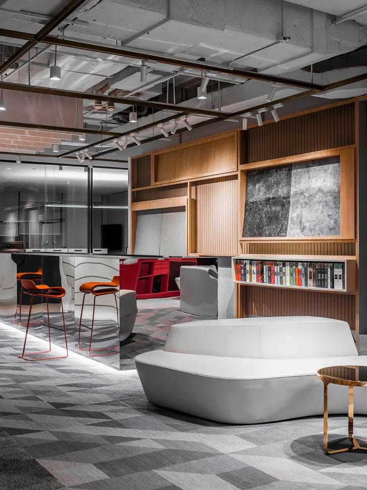 深圳裝飾公司的想法與該項目的初衷是一致的。設(shè)計師一直在考慮復雜環(huán)境中兩個空間之間的關(guān)系。因此,設(shè)計師削弱了展廳的部分展覽功能,以滿足辦公空間的需求和標準。通過大量的吸音材料和復雜的聲學處理,設(shè)計師減少了展廳區(qū)域的噪音和地面高度所帶來的回聲,并充分利用了展廳的優(yōu)勢,例如水景,垂直植物和藝術(shù)品豐富了辦公環(huán)境,盡管展廳+辦公室的空間形式有所增加,此外,如何實現(xiàn)復雜性,但在最終展示空間時的使用體驗卻達到了不同的體驗。最初是零售商店的二樓。為了確保展館的地板高度要求,特別考慮了入口。為了優(yōu)化人員流動并抵消辦公空間和展覽空間之間的直接聯(lián)系,設(shè)計師設(shè)計了一些散布在整個空間中的緩沖區(qū)。這些空間不僅緩沖了空間之間的關(guān)系,而且增加了空間的層次感。走進大廳,一側(cè)是展覽廳,另一側(cè)是綠色植物,使展覽空間充滿生機。前臺聯(lián)合辦公室是展覽和辦公室并存的緩沖,而后場則是正式的辦公室區(qū)域。