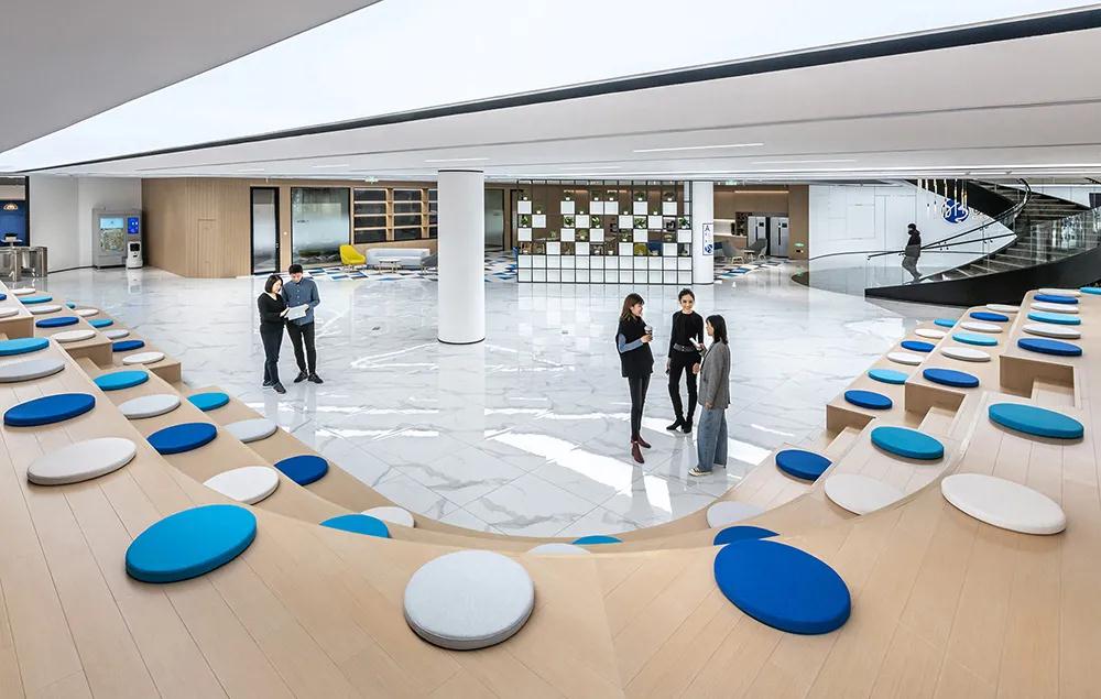 整體空間設(shè)計(jì)以井為標(biāo)準(zhǔn),兼顧空氣、水、熱舒適、采光、心理健康等因素,使用更多天然材料,營(yíng)造有利于健康高效工作的環(huán)境。多功能“明天廣場(chǎng)”配備樓梯空間和咖啡廳,讓員工在半正式的氛圍中交流、參加會(huì)議、工作 正門(mén)附近的社交網(wǎng)絡(luò)和螺旋樓梯增強(qiáng)了上下的可達(dá)性地板。一樓有大理石臺(tái)階和精心規(guī)劃的綠色植物,營(yíng)造出活潑的氛圍。懸掛式螺旋水晶吊燈與螺旋梯相得益彰,象征著不斷崛起、不斷創(chuàng)新的企業(yè)文化。以城市規(guī)劃理念為基礎(chǔ),結(jié)合穆在建筑、空間戰(zhàn)略規(guī)劃、室內(nèi)設(shè)計(jì)、工程設(shè)計(jì)等專(zhuān)業(yè)領(lǐng)域的經(jīng)驗(yàn),室內(nèi)空間設(shè)計(jì)打造以員工為中心、促進(jìn)溝通、與品牌形象相匹配的辦公室全球企業(yè)和人工智能領(lǐng)導(dǎo)者,我們強(qiáng)烈支持明略創(chuàng)造“人機(jī)合作更美好世界”的愿景。