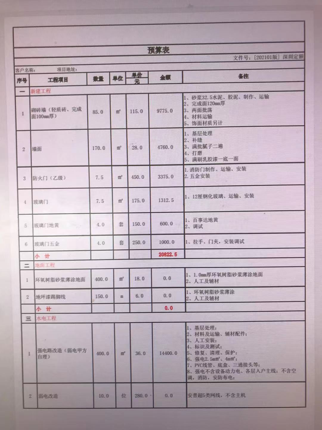 深圳裝修報價單明細(xì)表